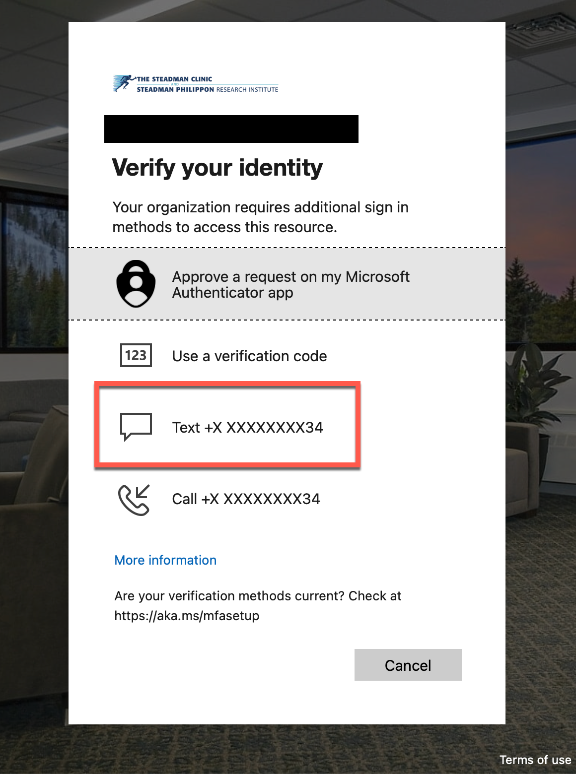 Step 7. In the subsequent window, click the "Text +X xxxxxxxxxx" link to receive a code via text.