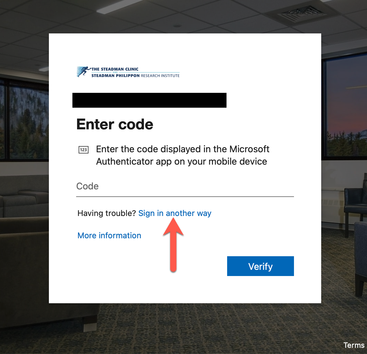 Step 6. If you see the below window asking for a code from Microsoft Authenticator, click the "Sign in another way" link to proceed. If you do not see this window, skip this step.