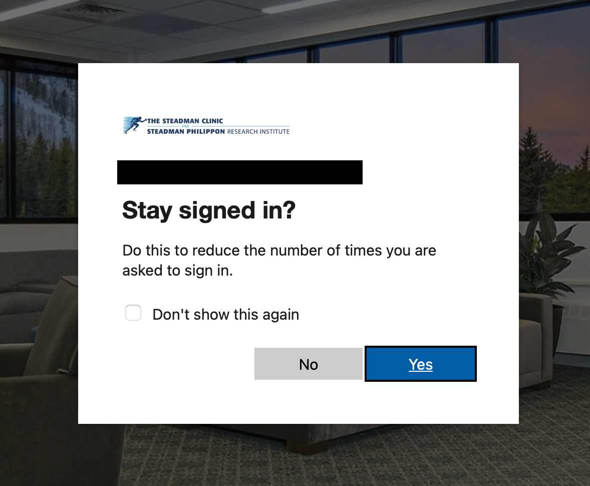 Step 9. Once you've entered the code, you will see the following window; you can choose either option, as this will be displayed upon every sign-in attempt.