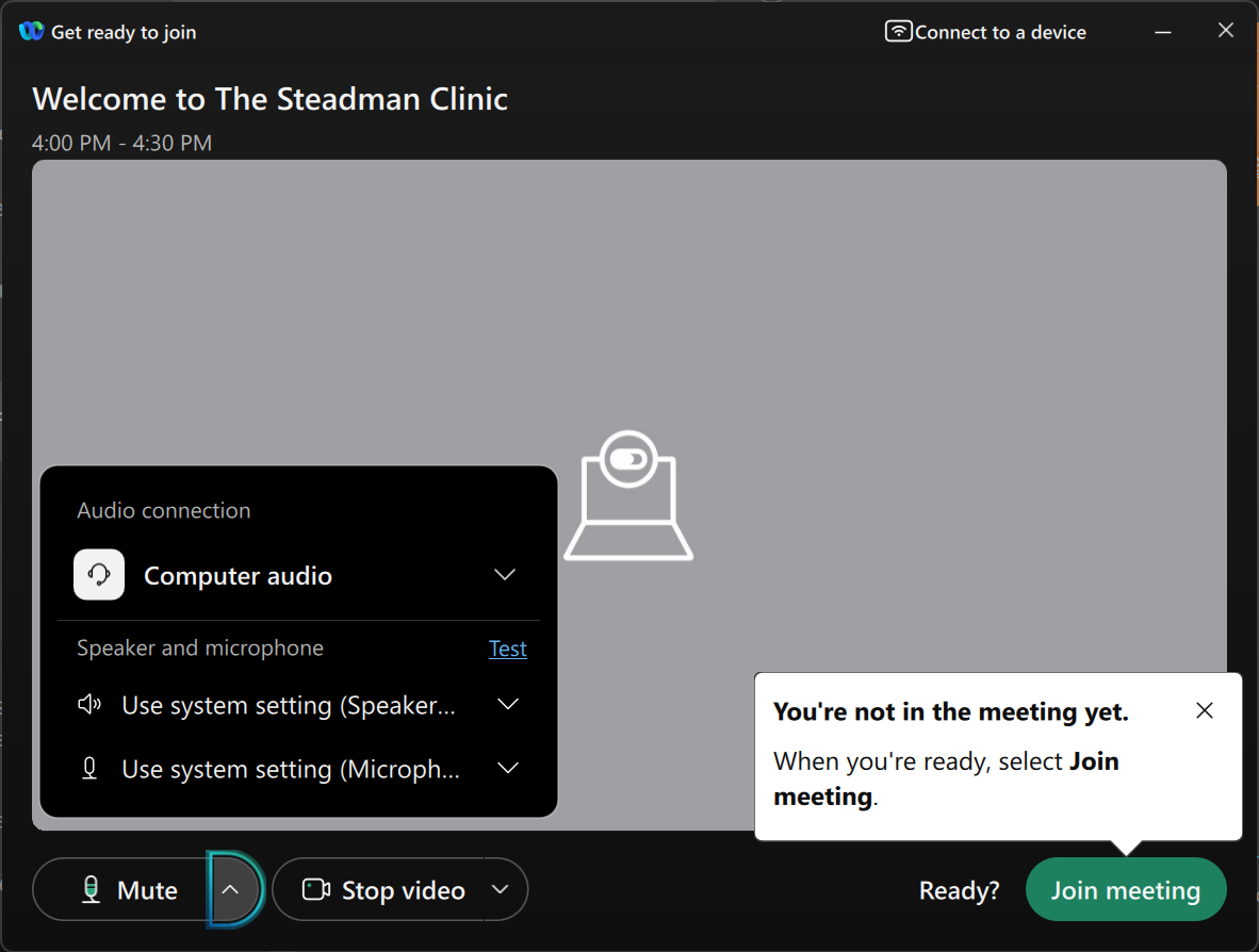 Step 9. Adjust your Camera and Audio settings, then Join meeting.