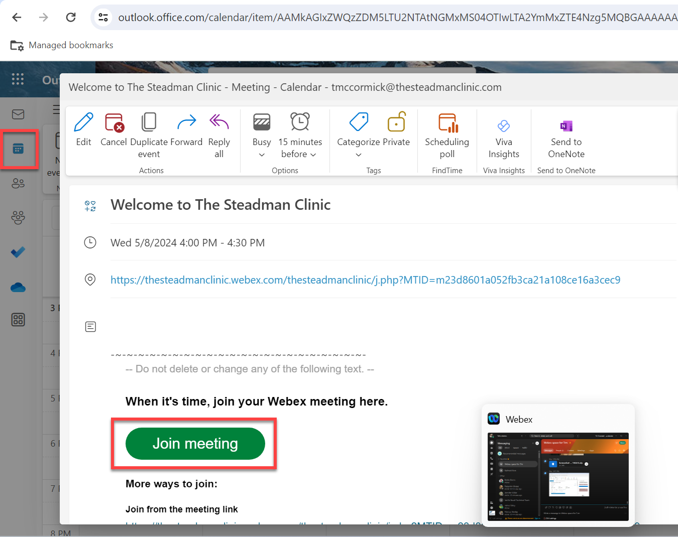 Step 7. Join the meeting - Go to your calendar, open the meeting, select Join meeting.
