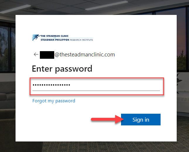 Step 5. In the following window, enter your AD password (the same password that unlocks your PC) and click Sign in; upon clicking Sign in, you will need your phone.