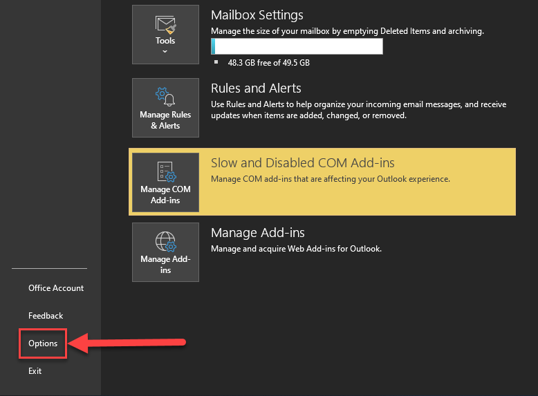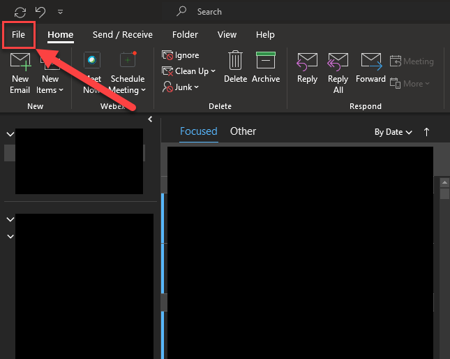 Step 1. Within Outlook, locate and click on File in the top left corner.