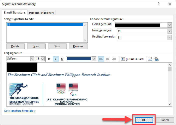 Step 6. Once you've configured your signature(s) the way you want, click the OK button and you are all set.