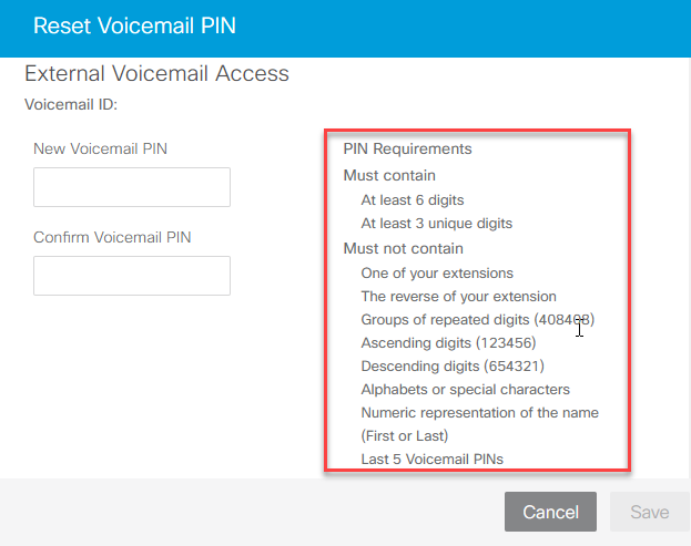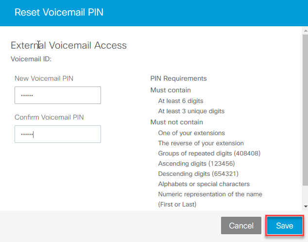 Step 7. Once you've entered in a PIN that meets requirements, click Save & your PIN will be reset.