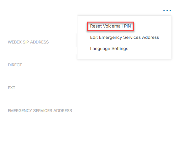 Step 5. Within the resulting menu, click Reset Voicemail PIN.