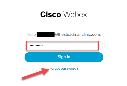 Step 3. When prompted, enter your Webex Teams password; if you're unsure of it, the Forgot Password? link will assist you in resetting it.