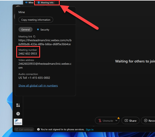 Step 3. In order to find the meeting number, go to the meeting invitation. You can also go to "Meeting info" if you have already started the meeting from your laptop.