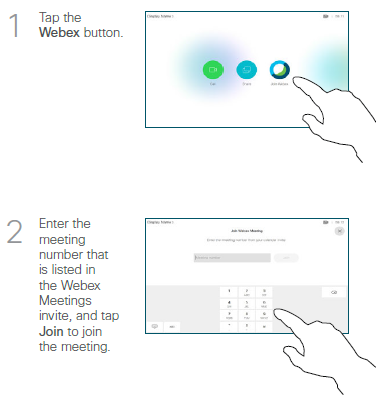 Step 1. On the tablet in the center of the table, tap the webex button.