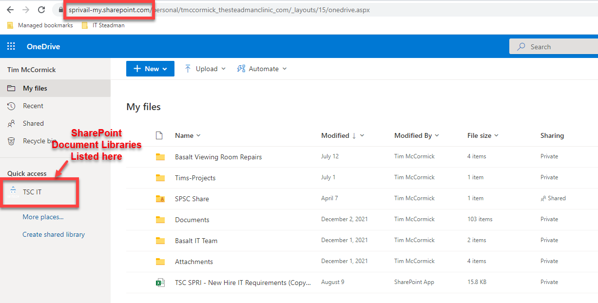 Step 2: Access your OneDrive files and your SharePoint files in one location.