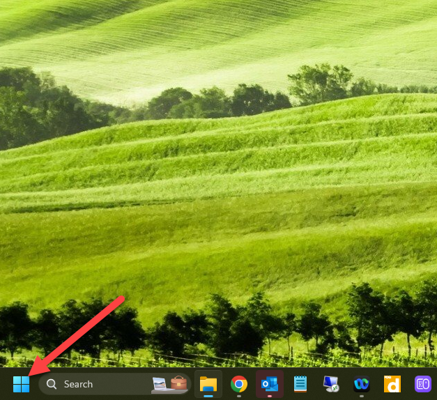 Step 1. In the bottom left of your screen, click the Start menu, as noted by the red arrow.