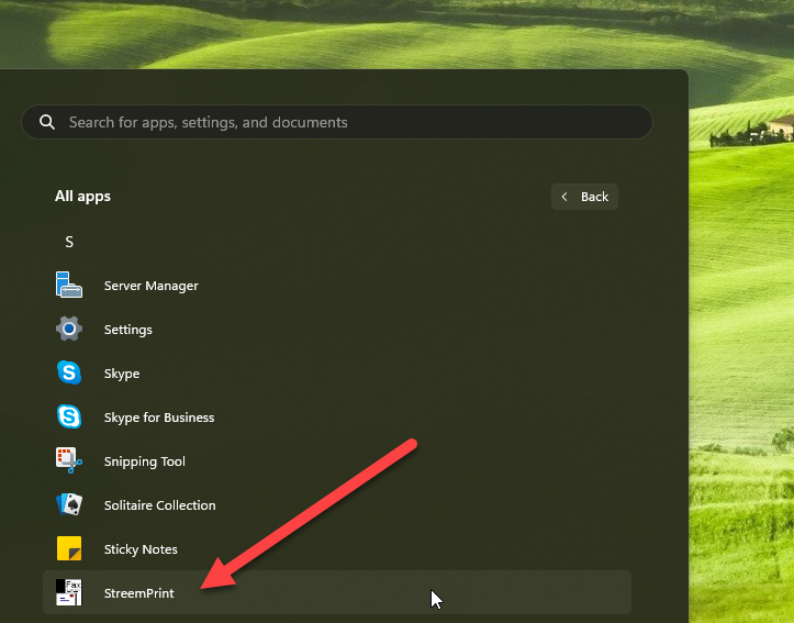 Step 3. In the resulting window, where the programs are alphabetized, scroll down to the S section and click on StreemPrint.