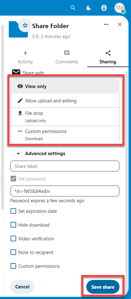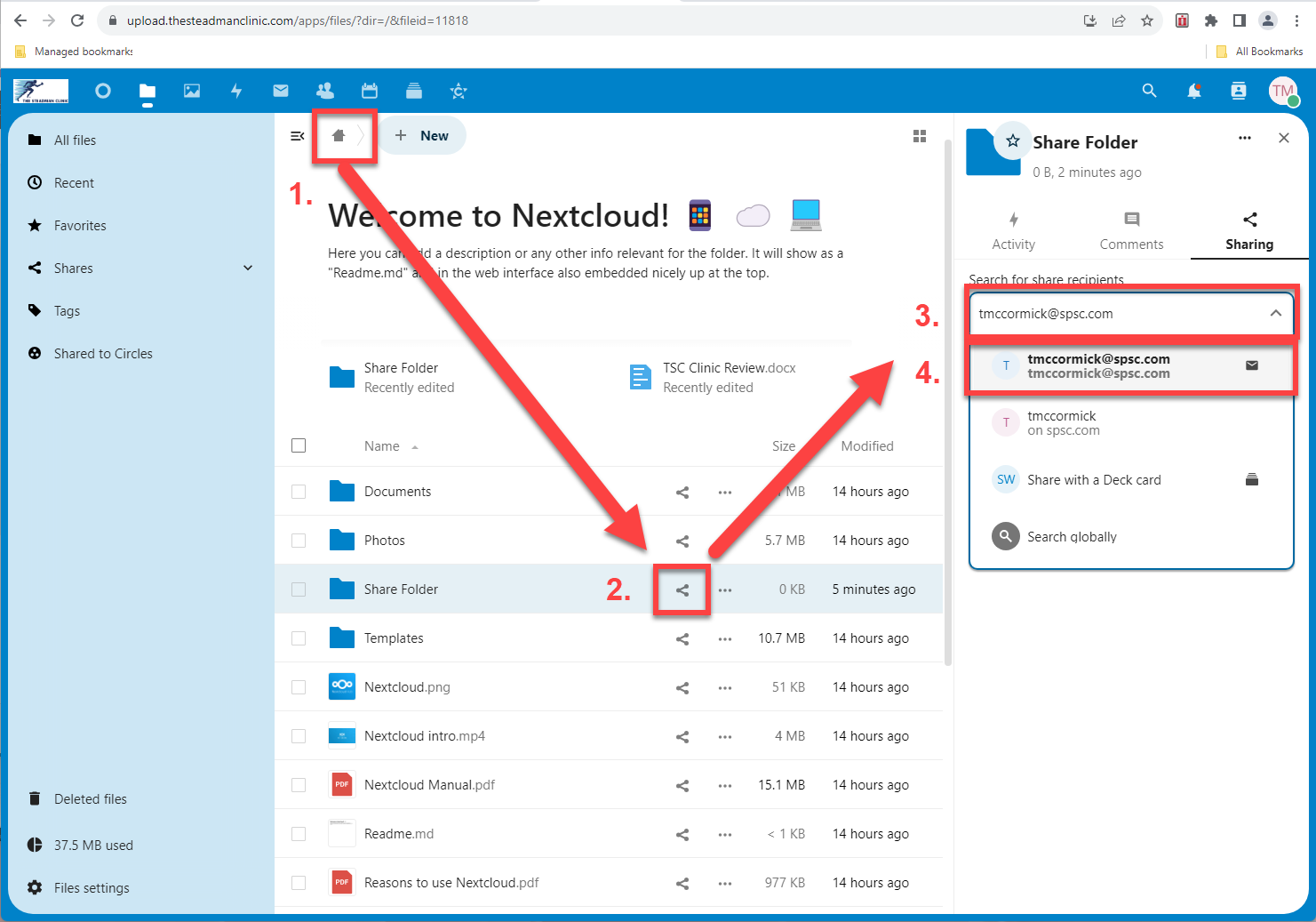 Step 6. Locate the files or folder you would like to share, click the Share icon, type in the email address and select the email.