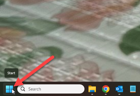 Step 1. Click the Windows icon in the bottom left of your desktop (furthest left icon on the Taskbar) as denoted by the red arrow. This will open the Start menu.